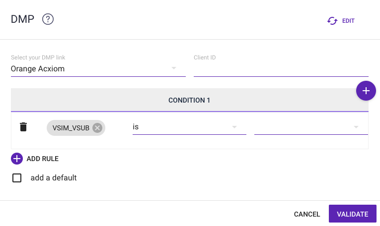 Once the DMP has been selected, you must enter the Client ID. This field is for the identifier (ex. encrypted email) to be used to retrieve the data from the DMP for each person.