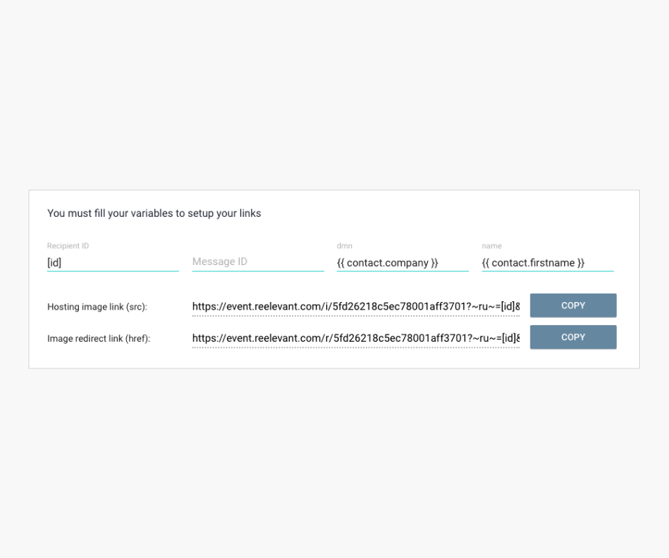 Once all of the variables have been completed, you can copy your links. You can change these variables at any time and copy the new links.
