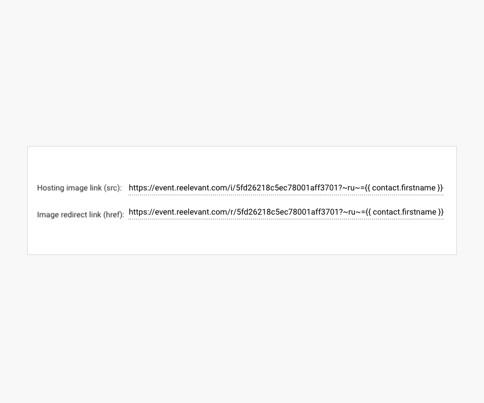 The variable to be used must match the router. It will automatically be changed at the time of sending to be appended to the image hosting and redirect URLs, for example: <%= recipient.customerid %>