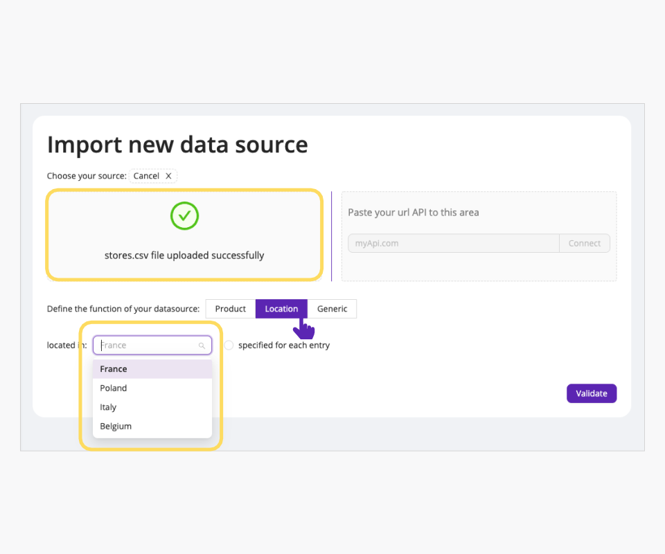 When importing your file or entering your URL, the Data Source starts parsing it. A message appears when validating your file import (in the correct format).
