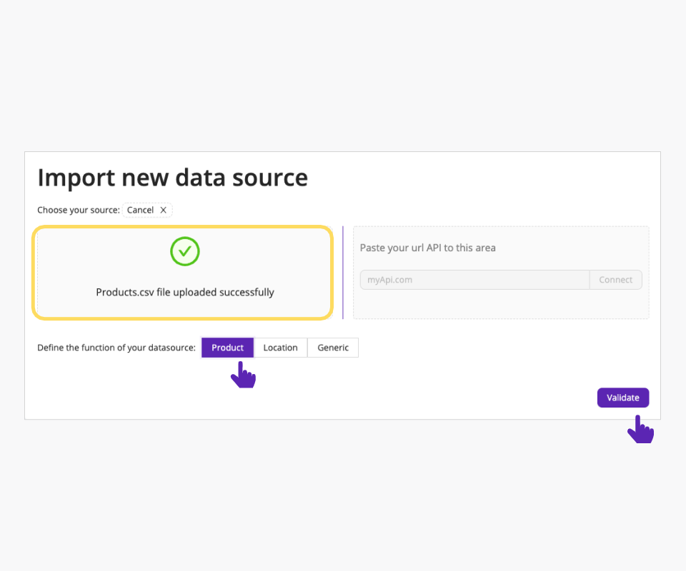 When importing your file or entering your URL, the Data Source starts parsing it. A message appears when validating your file import (in the correct format).