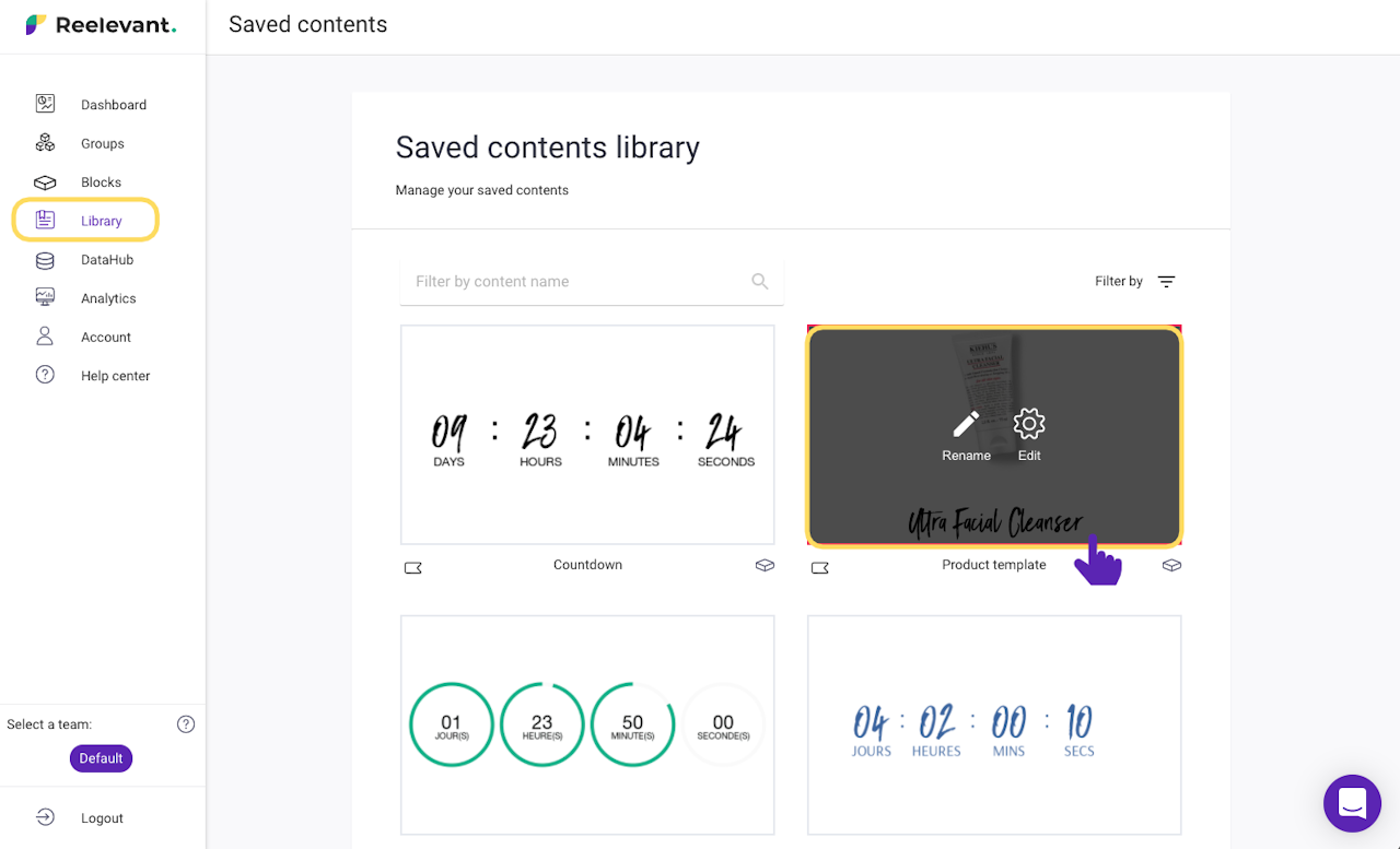 To do this, click “Library” on the left side of the application to go to your content library, where you will find the content you’ve created.