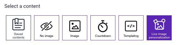 The Live Image Personalization option lets you create unique, personalized content when the email is opened. This tool lets you use customer data, contextual data, and product data to create content.