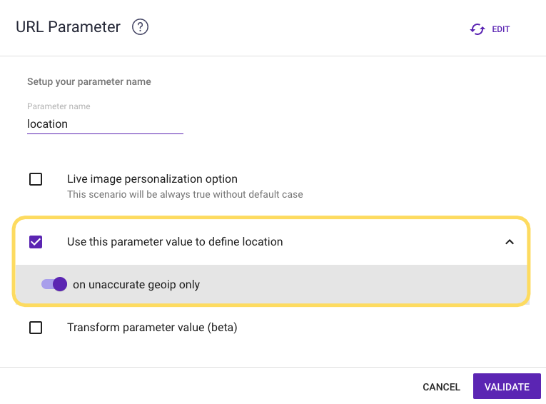 Here, we’re calling it “Location”. Next, select the “Use the value of this parameter to set to location” checkbox.