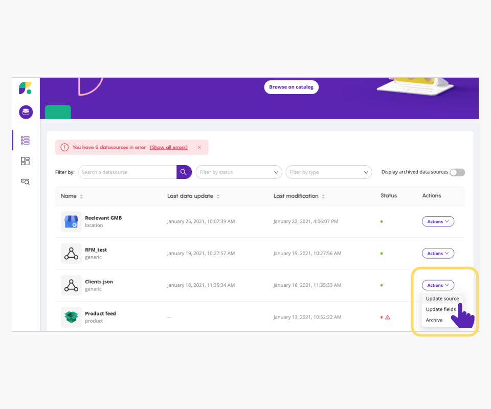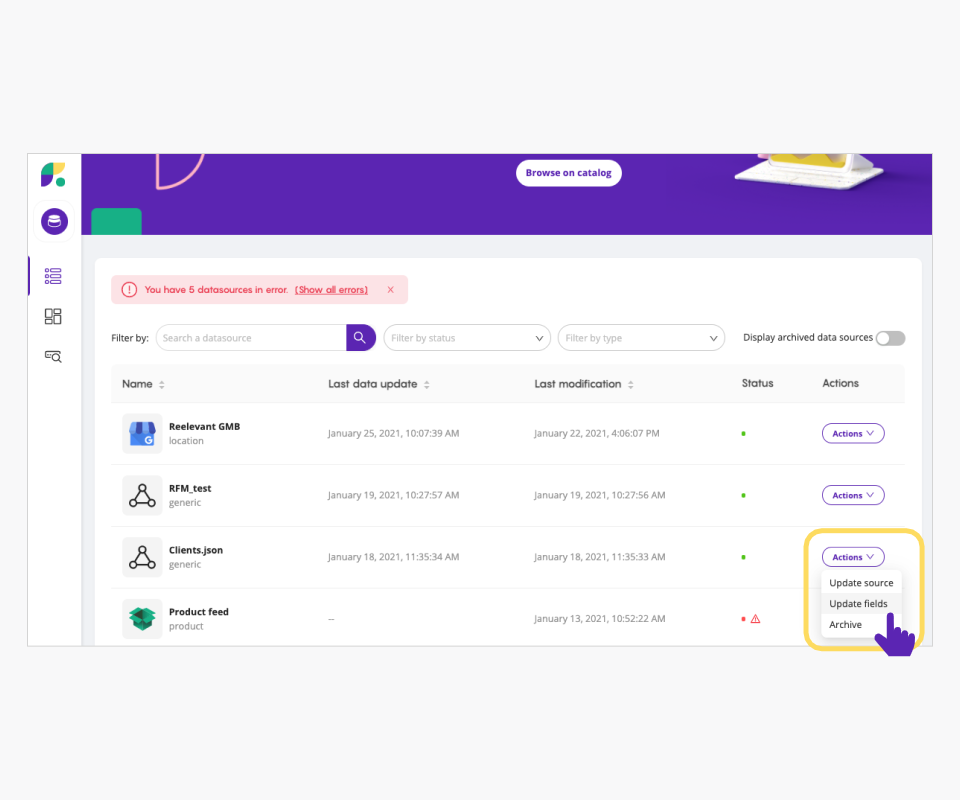 1. Editing your data source fields in the DataHub