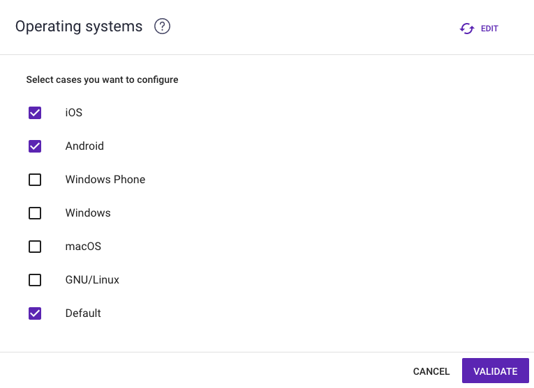 Allows the content of the email to be adapted to the detected operating system: iOS, Android, Windows Phone, Windows, macOS, or Linux.