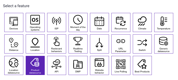 The product feed allows you to create a scenario based on data from your product feed, which you will have previously connected to the DataHub platform.