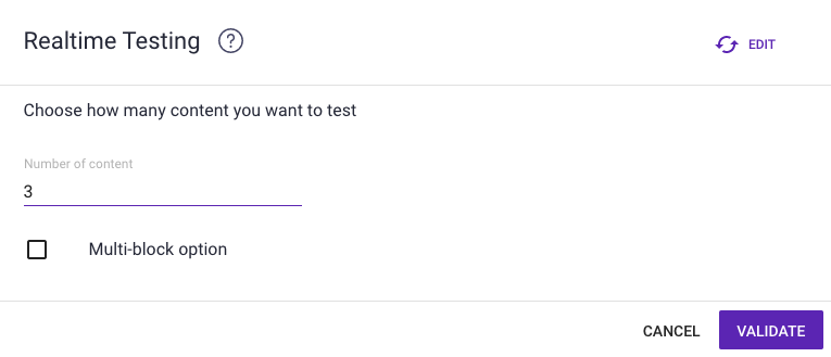 Then, set up your feature by entering how much content you want to test. Here, we’d like to test three contents.