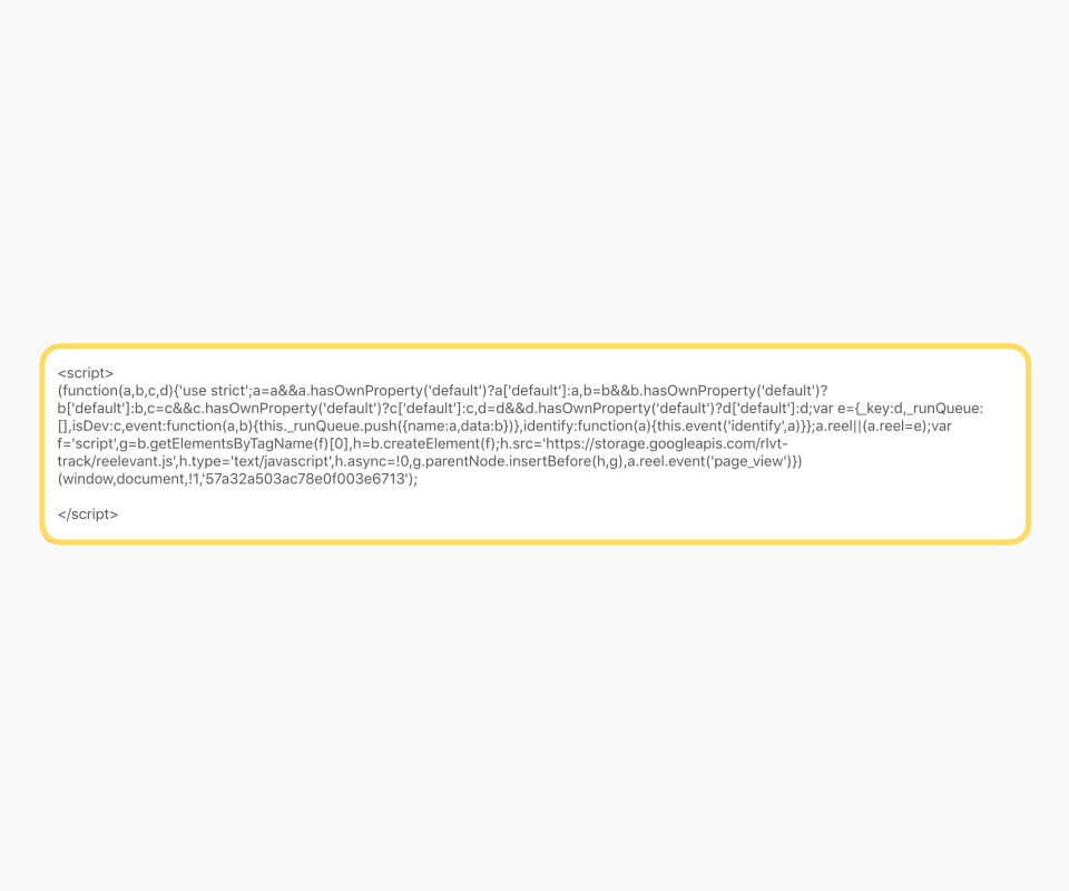 If you want to use the website navigation functionality, you will need to include Reelevant tags on your website. To do this, copy and paste the following code onto each page you’d like to track to optimize conversions.