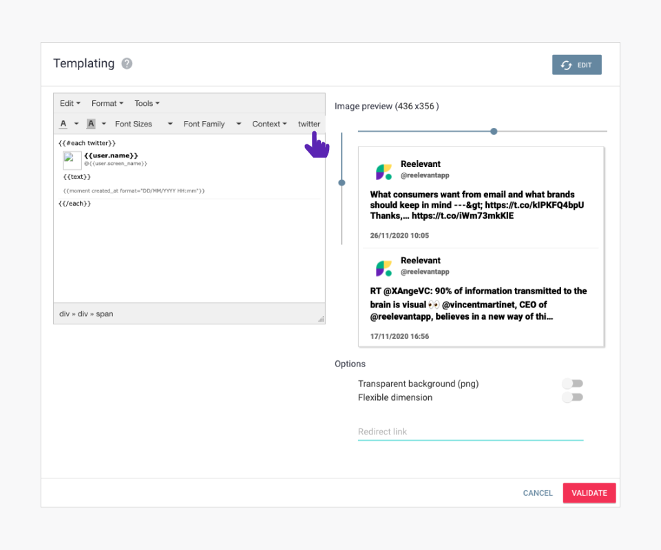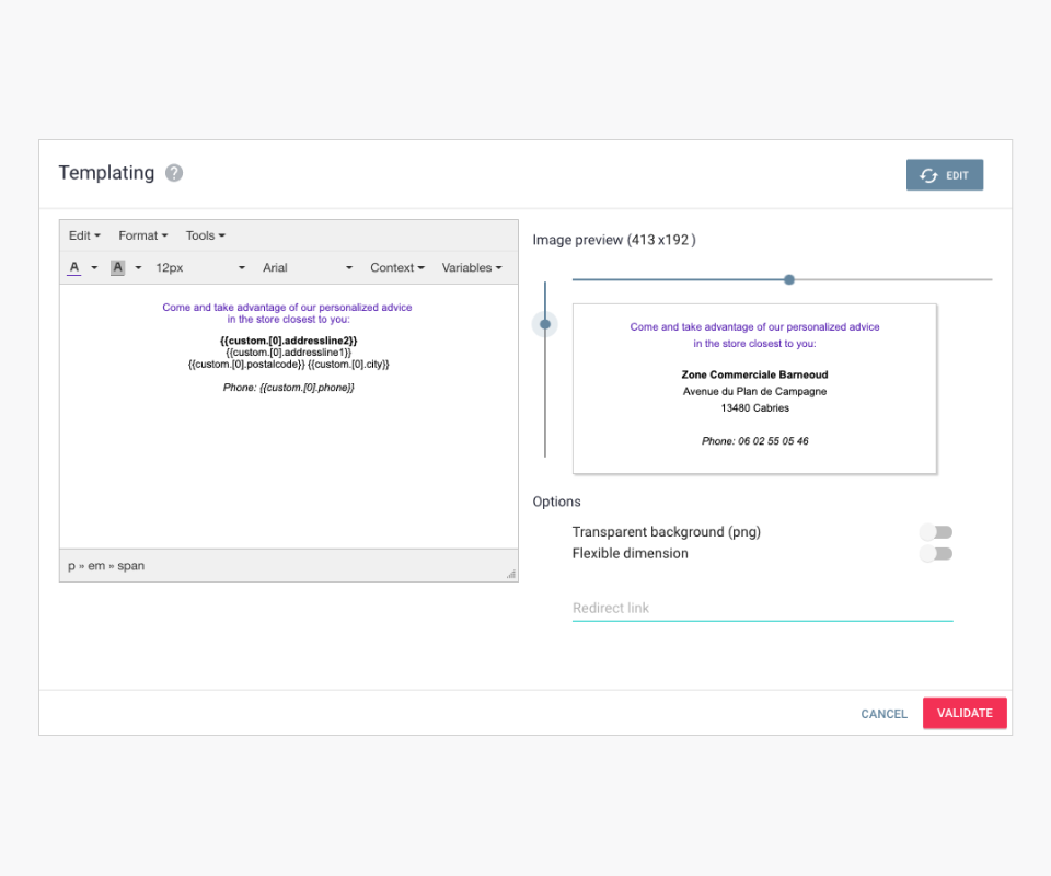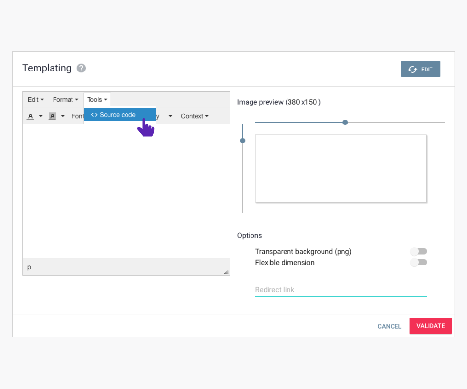 Templating lets you format your content as you’d like or paste in your own HTML code.