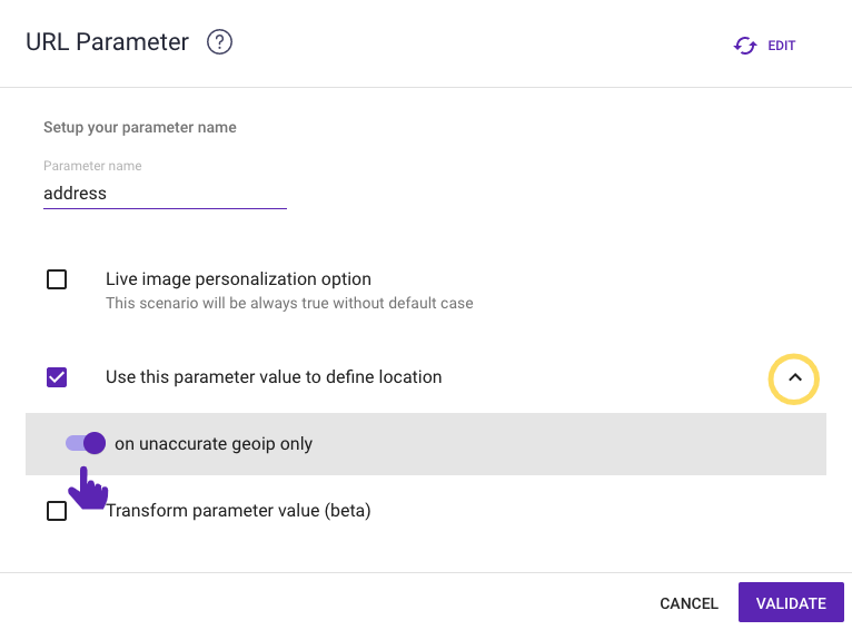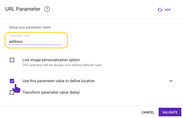To do this, select the “Use this parameter value to define location” option.