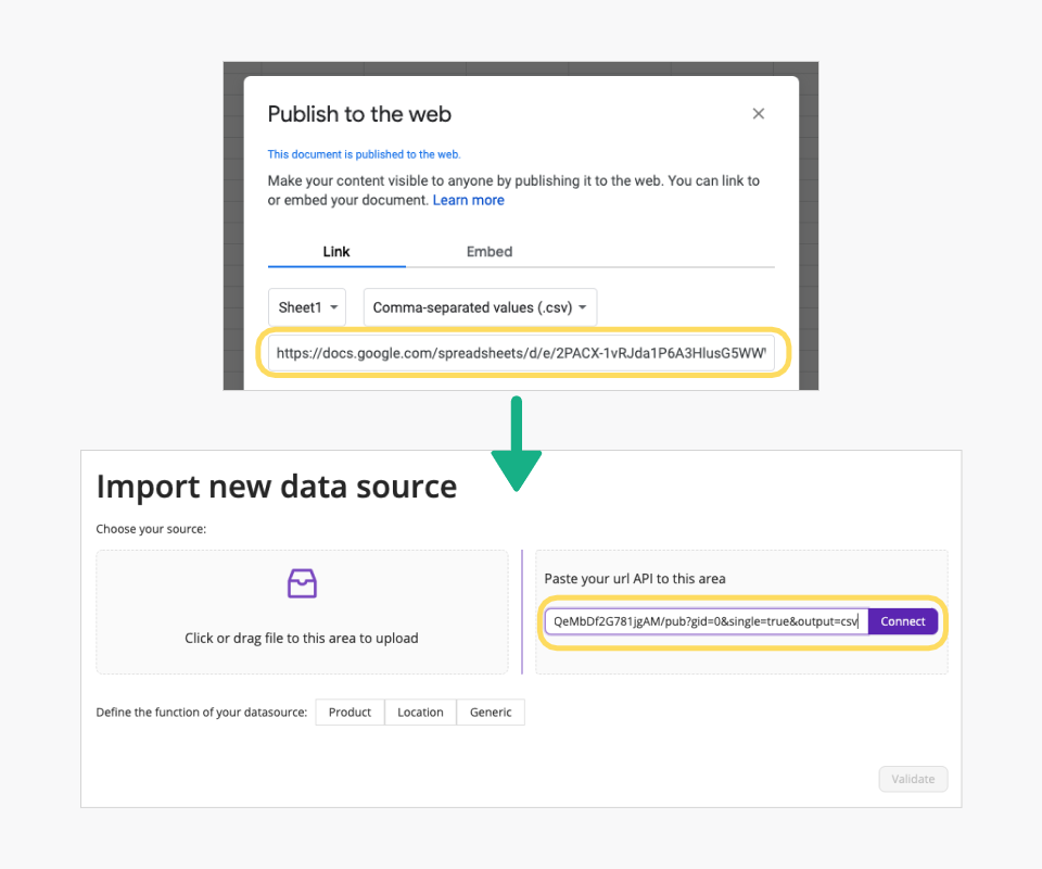 4. Use the provided URL to import it directly into the Data Source.